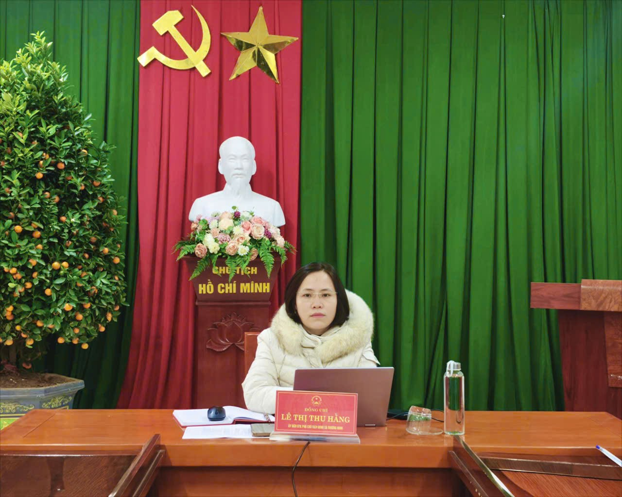 Đồng chí Lê Thị Thu Hằng, UV BTV, Phó Chủ tịch UBND xã chủ trì hội nghị